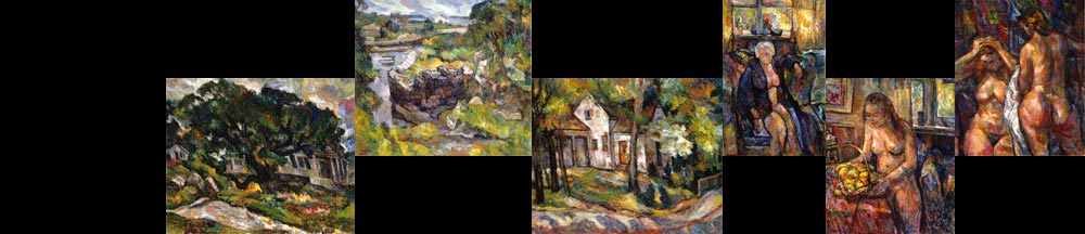 In arriving at the highly advanced level of artmaking demonstrated in his recent paintings, Loper constantly experimented with different painting methods and styles. He drew early inspiration and learning from a number of artists such as Van Gogh, Van Ruisdael, Corot, El Greco, and the beloved works of Cezanne; and later more modern artists such as Picasso and Pollock. Over the years, he also came to know much about the great Venetian painters, Tintoretto, Titian, and Veronese. In the catalog accompanying Edw. L. Loper: From the Prism’s Edge, Jenine Culligan summarized Loper’s approach. "Loper never copied any one style, but incorporated selected aspects of individual artist’s techniques and approaches into his own ideas. His fracturing of the picture plane began in the mid-fifties (see Peggy’s Cove). He often created an almost kaleidoscopic effect.